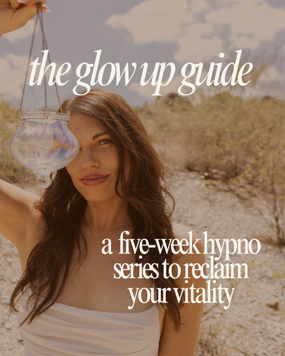 the glow up guide is a live, guided group hypnosis series to help you reprogram your body, mind, and soul at the root level—so you can glow from the inside out. This isn’t about surface change. It’s about becoming the most radiant, magnetic version of you.